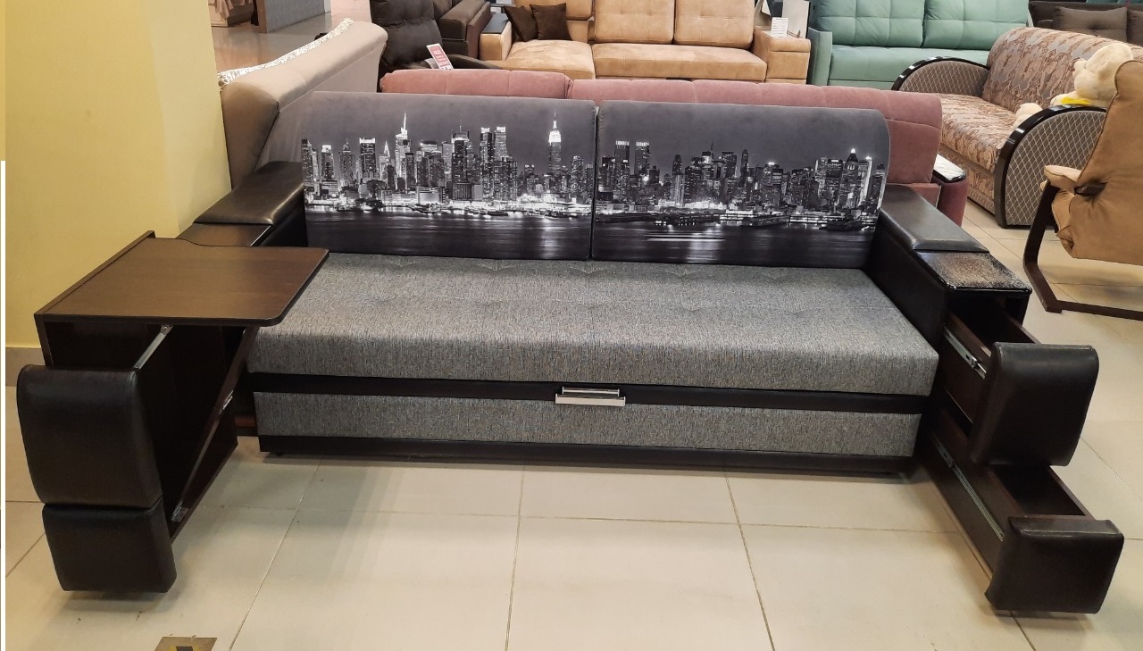 Раскладные диваны со столиком с бесплатной доставкой до подъезда г. Москва. Московская область за МКАД - 50 руб. 1 км. оплата при получении. Работаем по договору (с частичной предоплатой). Большой выбор моделей, вариантов обивки. Доставка за 5 - 7 дней.